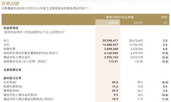 相较之下,归母净利润方面就有些尴尬:2025年为人民币29.36亿元,较2024年的人民币30.13亿元同比减少2.56%,明显是“增收不增利”的体现。